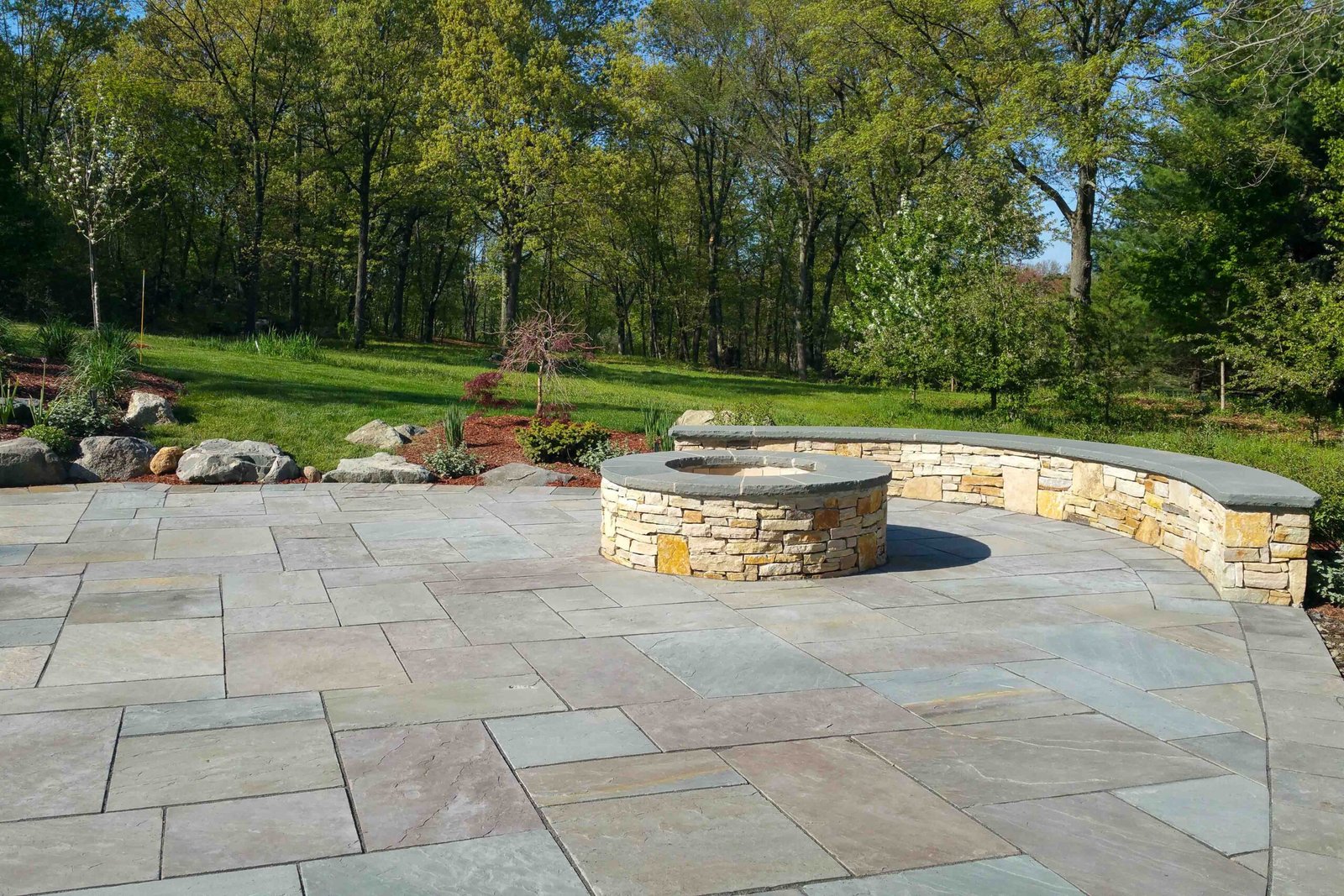 Complete outdoor living spaces including patios, seating areas, and custom features.